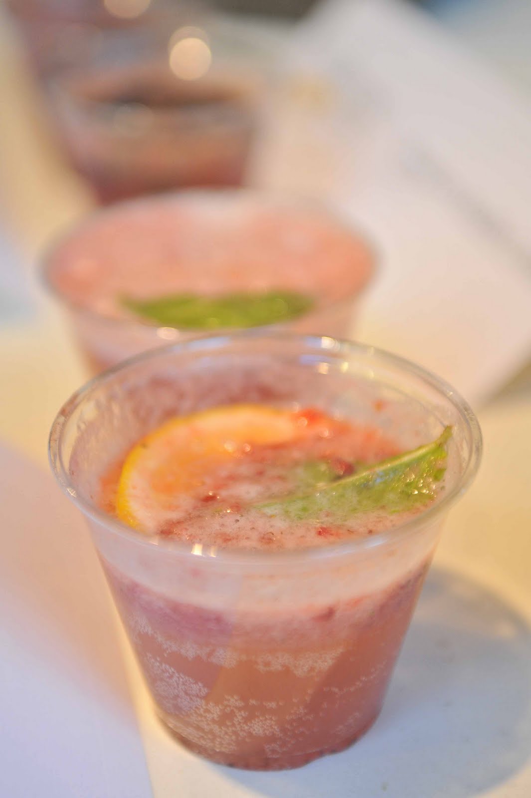The first thing that caught my eye (that’s me taking a pic!) were the freshly muddled strawberry cocktails, made very simply with…you guessed it, freshly muddled strawberries and Proscecco and garnished with a mint leaf. What a refreshing cocktail that can be easily made as non-alcoholic drink by substituting the Proscecco with sparkling white grape juice. Proscecco is a sparkling wine from Italy and very similar and often compared to and against Champagne from France.