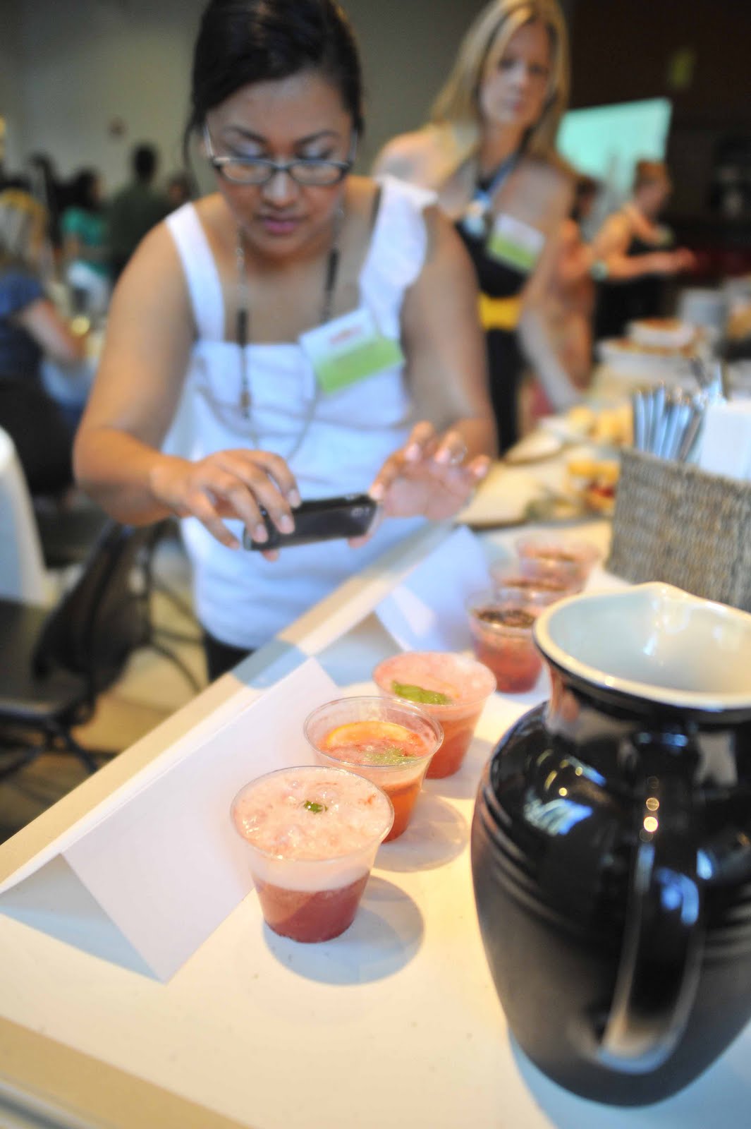 The strawberry themed hors de vours were greeted with tons of “Oooohhhhs” and “Aaaaaahhhhs” from a room full of women who adore these beautiful berries. Strawberries are mostly associated with desserts like the classicly delicious, Strawberry Shortcake (pictured above) or ice cream. But on this day, I was excited to try the Strawberry Gazpacho (left) which I pressumably thought was going to be sweet, but instead greeted the complex flavors of jalapeno, cilantro, jicama, garlic and cucumber. What a great surprise. Other great recipes included Fresh Crab Tostadas topped with Strawberry Mango Salsa, a Goat Cheese & Strawberry Pizza topped with a balsamic reduction, and even a Strawberry and Cheese Panini that would be great for a baby or bridal shower and even a little girls tea party!