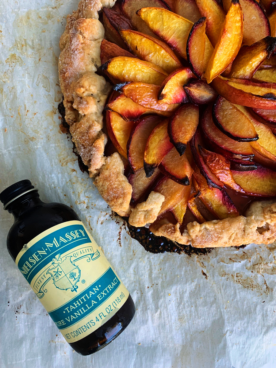 My recipe for Brown Butter Nectarine Plum Galette with Vanilla Meringue Topping is made from scratch from the crust to the meringue, making this a very special and elegant dessert. I used Nielsen-Massey’s Tahitian Pure Vanilla Extract which has a delicate, fruity flavor that pairs well with the fruits used in this recipe.