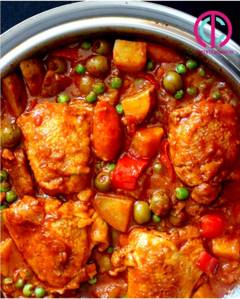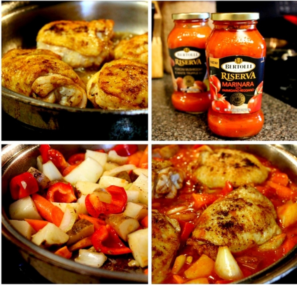 I took Bertolli Riserva Marinara to recreate this Filipino dish called Chicken Afritada made with chicken thighs, onions, garlic, carrots, potatoes, peppers, olives and green peas for a hearty dinner.
