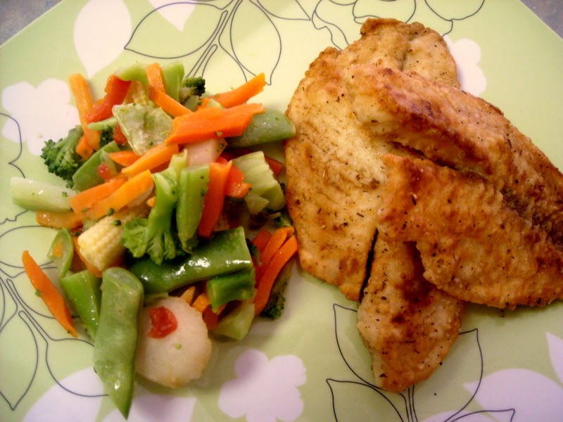 I love cooking with Tilapia. It is a white fish that lends itself to whatever flavors you choose. It can be cooked medittereanean style in olive oil, capers and cherry tomatoes. It can also be done cajun style, blackened with creole seasonings or simply dusted with flour and fried crispy, like in this easy recipe. There are so many ways to cook this fish. Also, a great plus is that it is fairly inexpesive and a great must have for quick and easy meals.
