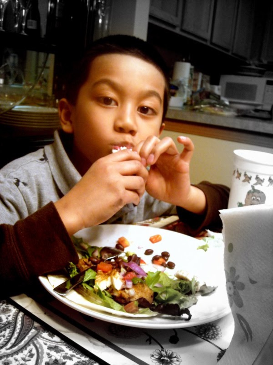 Working in the food industry for so long has given me lots of advantages in my cooking repetior. I have figured that eating healthy doesn't mean eating bland. Actually, I believe that by putting in lots of flavor in foods and using the freshest ingredients as much as possible, I am able to cut useless carbs and calories. On this path to becoming healthier in my eating habits, I unknowingly have also taken my whole family on this journey with me. Even my 8 year old son is picking up these habits! Everyday I ask him about his day in school, his classes, what he did during recess and what he ate for lunch. Twice in one week he responded with "Salad"!!! Amazing. Last night for dinner I made a household favorite, TACOS! Keeping in mind cooking and eating lighter, I decided to make fish tacos. In many restaurants, fish tacos are heavily battered and deep fried. I wanted to nix that idea and keep it simple, not to mention keep the time it takes to prepare and cook the dish to a mininal. To accompany the fish tacos, I made a black bean salsa with only a couple ingredients.