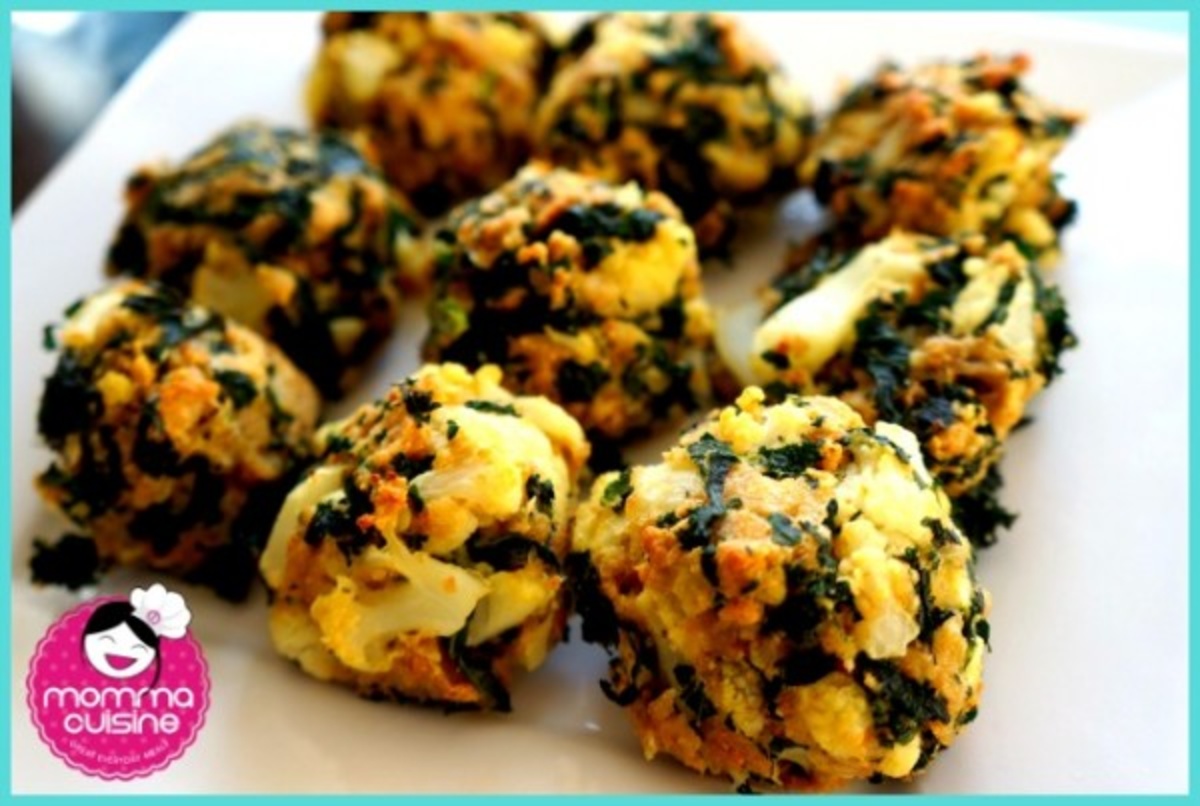 In a large bowl, combine all the ingredients together with your hands. Form balls out of the cauliflower and kale mixture – about 2 inches in diameter.