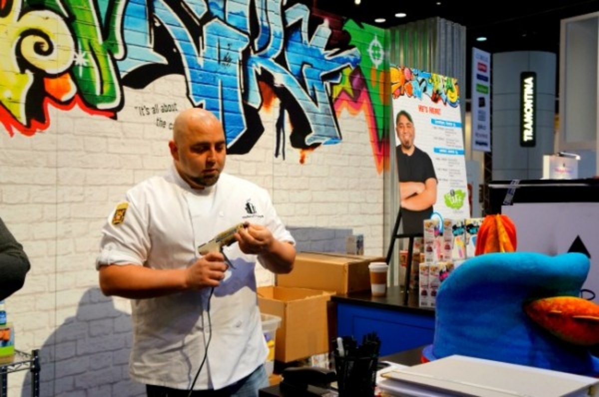 My interviews over the past couple of years at the Housewares Show are quite funny. I have no camera crew, no fancy lights or equipment. You would think the opportunity to interview such big names in television and in the food world would need a much bigger production. But no. It’s just me and a team member, dragging a camera and stand to meet America’s most favorite celebrity chefs. What happens during these interviews is a simple and real conversation. One that hopefully shares who the person really is. My interview with Chef Duff Goldman was one that I truly enjoyed. It was hard to turn it into a 4 minute video. The icing on the cake was that he stuck around after the interview and shared with us his story, his passion, and his excitement for his products. No typical celebrity chef would do that. He’s a regular dude with passions in music and street art, who found out that he also had a talent and love for cakes and decorating. The rest is history.