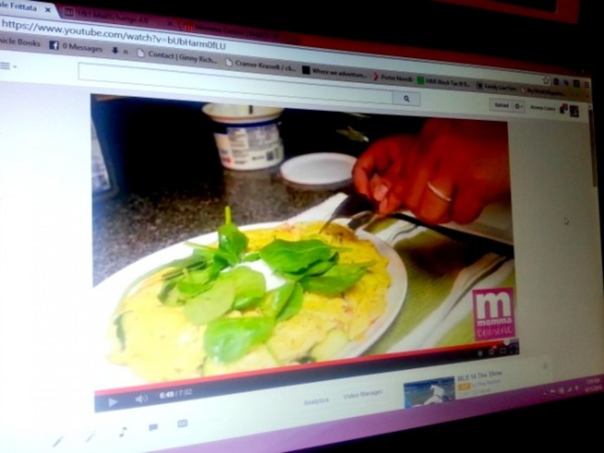 Slowly slide the frittata on a round plate and flip to cook the other side. Or you can heat the oven to 325 degrees and finish cooking the frittata in the oven for about 10 minutes. Make sure you frying pan or saute pan is oven safe.