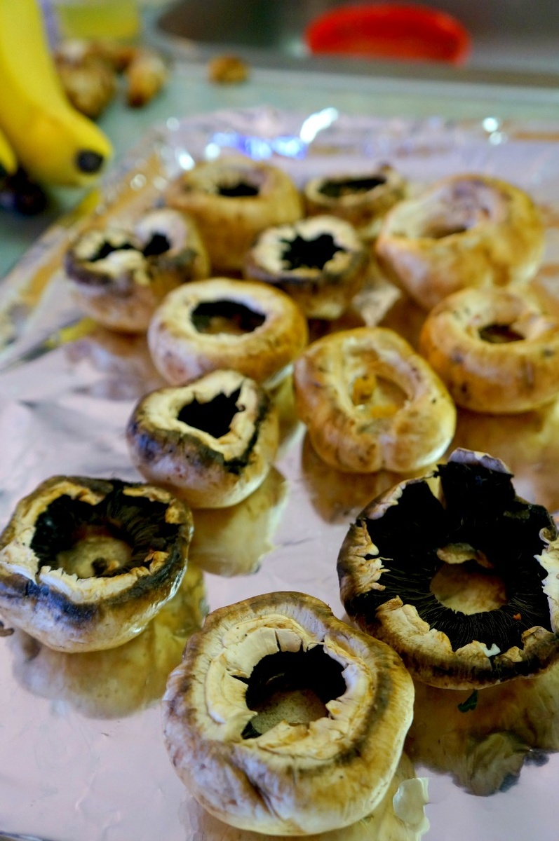 Place all the mushrooms on a lined cookie sheet. Drizzle lightly with more olive oil (optional) and bake in the oven for 20 minutes.