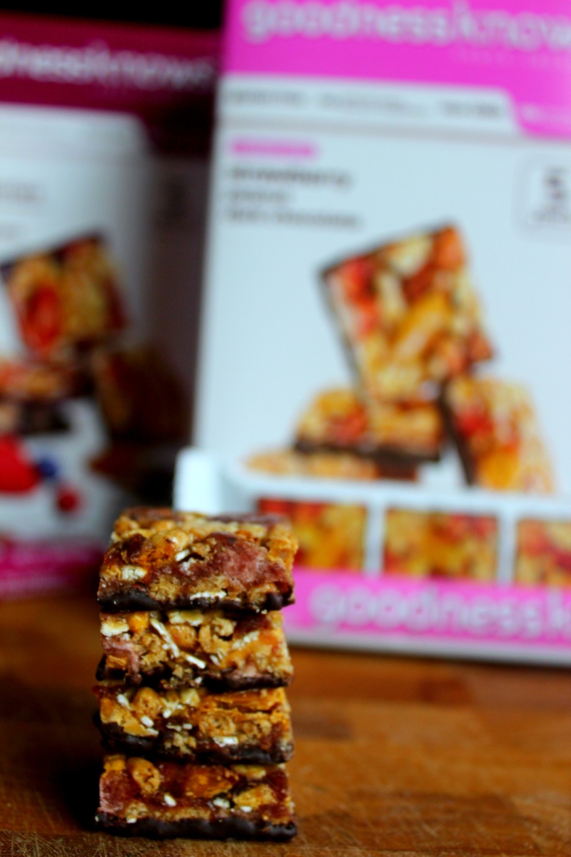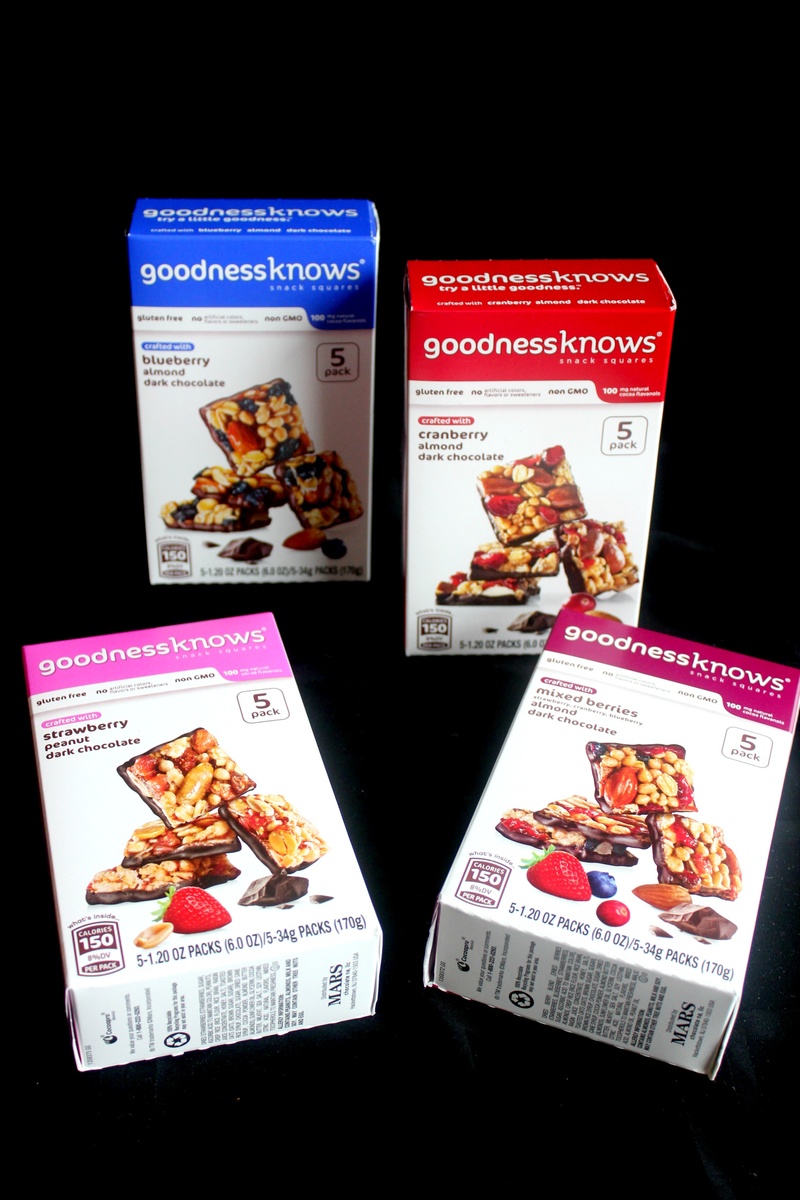 As I mentioned, goodnessknows sponsored this post and this January, they came out with three new flavors! goodnessknows is divided into four snackable squares per serving -- all for 150 calories – and their new flavors are: