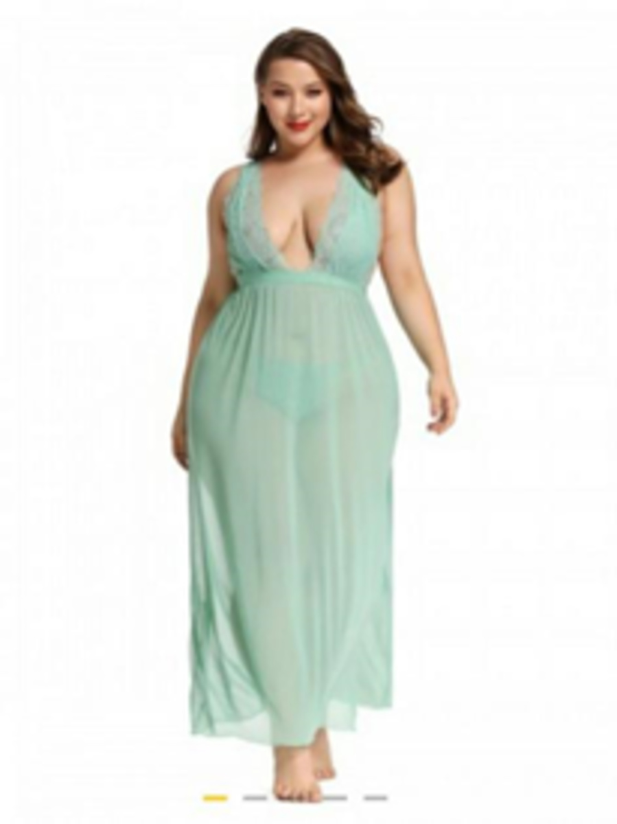 Combine extreme sensuality with elegance in this Daring Green Plus Size V Neck Babydool with Thong Trendy Online. The color and the material is very soft to the touch. It is comfortable to wear and fit perfectly to your body. The see-through material give a sensual feeling, which is perfect for a honeymoon lingerie collection.