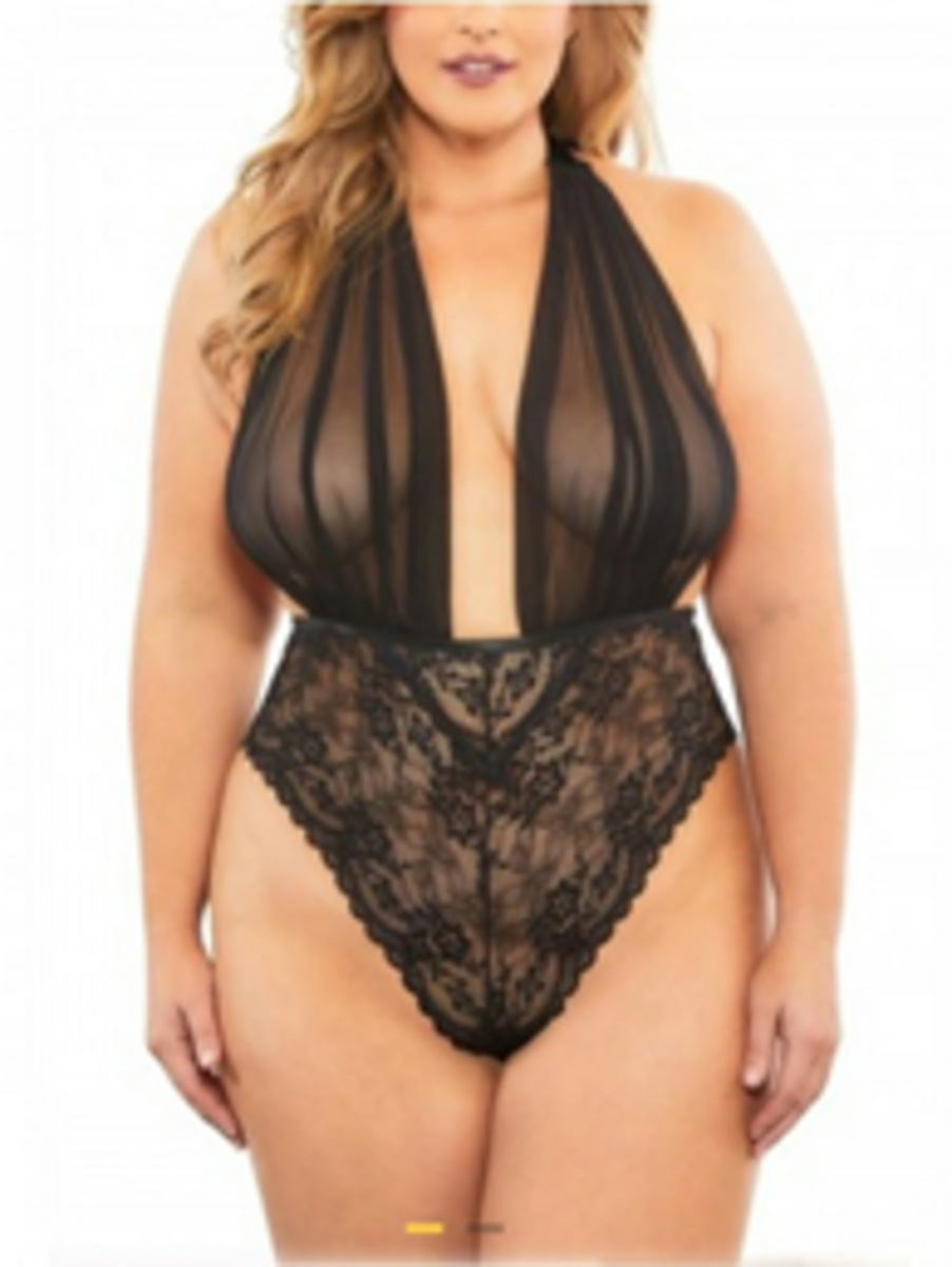 Black Backless Mesh Plus Size Teddy Lace Fashion Comfort