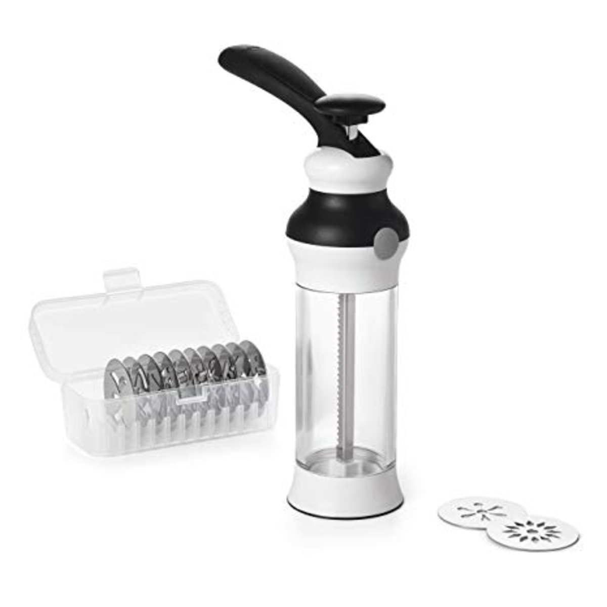 Everybody likes baking cookies because it’s fun, reminds us of that great time called childhood, and brings this amazingly cozy smell to the house we all miss. This cookie press can help you make fancy cookies with no sweat. It's indispensable if you cook for a party, want to have something to surprise your colleagues at work or to treat your friends and family. The press has several disks for you to have a choice of designs; you can even buy more disks separately to have enough designs for any season or holiday.
