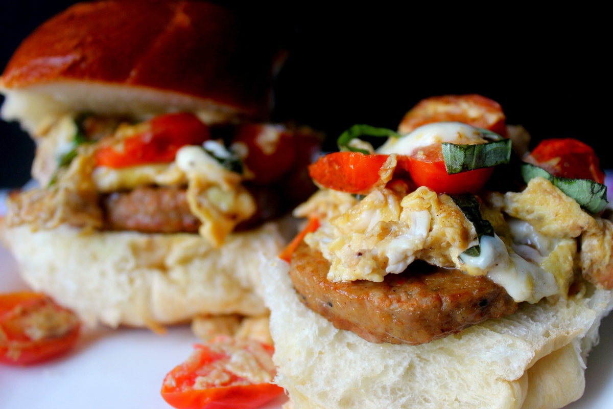 Caprese Egg and Johnsonville Sausage Breakfast Sandwich