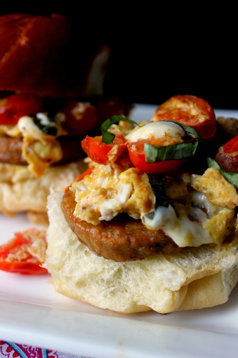 Caprese Egg and Johnsonville Breakfast Sandwich
