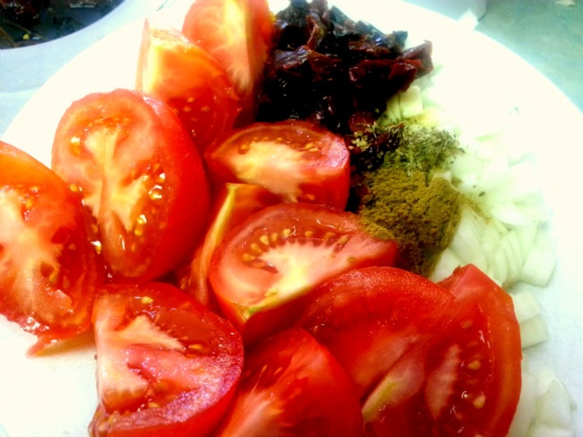 - 3 dried Ancho Chilies – soaked in water & chopped