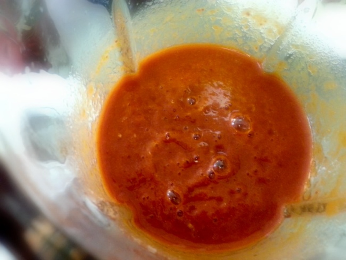 Take the diced Ancho chilies and the rest of the ingredients and blend them in a blender or food processor until smooth.